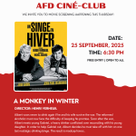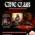 Bienvenue to the AFD Cine Club, where the magic of French cinema comes alive! Our Cine Club is a haven for film enthusiasts and culture lovers alike, offering a curated selection of classic and contemporary French films. Join us for regular screenings, lively discussions, and special events that celebrate the artistry and diversity of Francophone cinema. Whether you’re a cinephile or simply curious about French film, our Cine Club provides an engaging and immersive experience. Come, discover, and share the joy of cinema with us. Welcome, and enjoy the show!