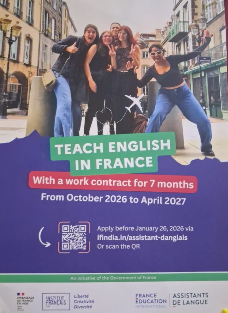 Institut Français en Inde is pleased to announce the opening of applications for the Assistants d’anglais Programme 2026–2027. This prestigious opportunity allows selected candidates to work in France as English Language Assistants while experiencing French culture firsthand.