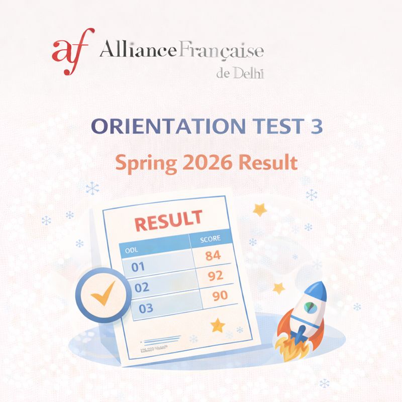 January 10, 2026January 12, 2026Orientation Test, Exams, FPPOST, OTRESULTPOST Orientation Test 3 Spring 2026 Results The Orientation Test 3 Spring 2026 Results at Alliance Française de Delhi are now available. Click here to download OT3 TP 3 […] Read more