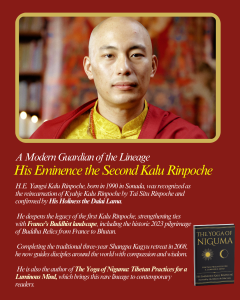 Having completed the traditional three-year Shangpa Kagyu retreat in 2008, H.E. Kalu Rinpoche now guides disciples across the world with deep compassion, insight, and clarity. He is also the author of The Yoga of Niguma: Tibetan Practices for a Luminous Mind, a work that brings this precious lineage to contemporary practitioners.