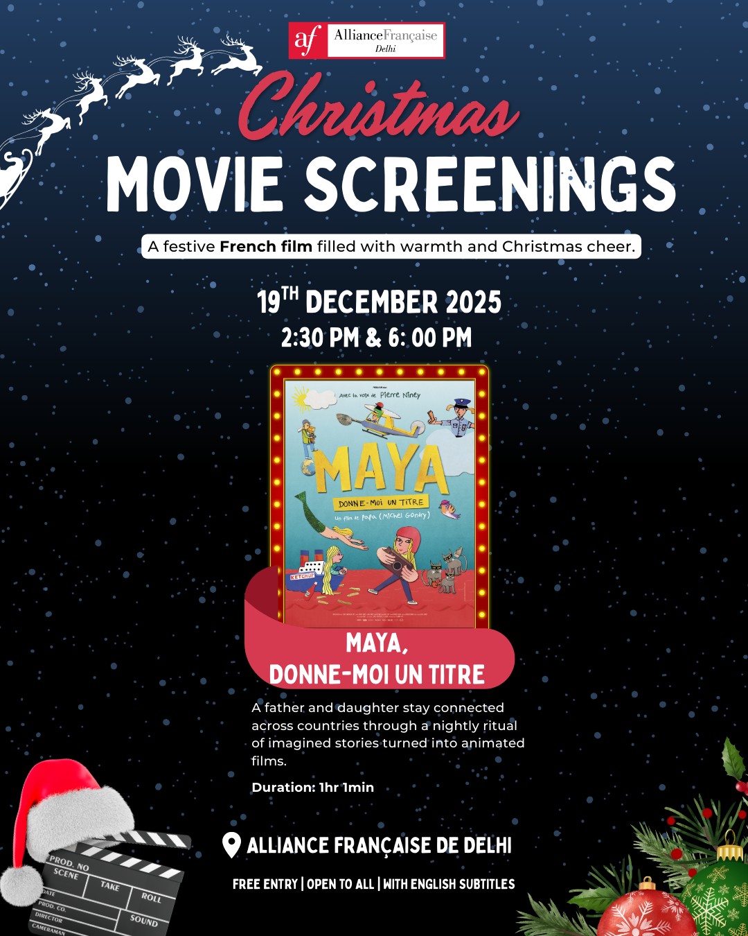 December 19, 2025 @ 2:30 pm – 8:30 pm – Christmas Film Cycle at Alliance Française de Delhi 🎄🎬 This Christmas, wrap yourself in winter magic, heartfelt storytelling, and musical joy with our specially curated Festive Film Cycle at Alliance Française de Delhi. Celebrate the season with snow-kissed tales, Christmas warmth, and the spirit of music, brought to life through cinema. Perfect for film lovers, […]