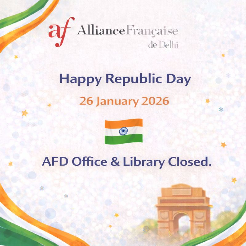 January 23, 2026January 26, 2026Notice Happy Republic Day | 26 January 2026 Happy Republic Day | 26 January 2026 On this Republic Day, Alliance Française de Delhi extends its warm wishes to everyone as […] Read more